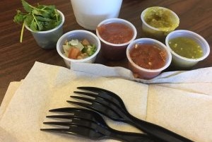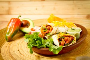 2 chicken floutas, sour cream, and guacamole. Served with rice, beans, and corn or flour tortillas.